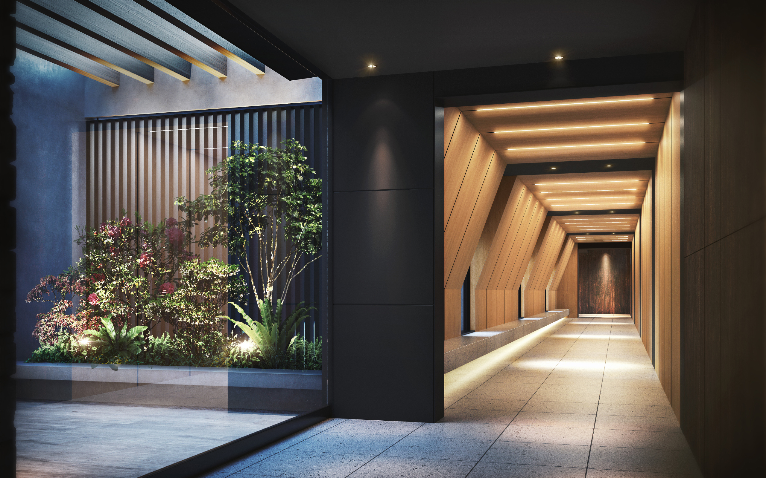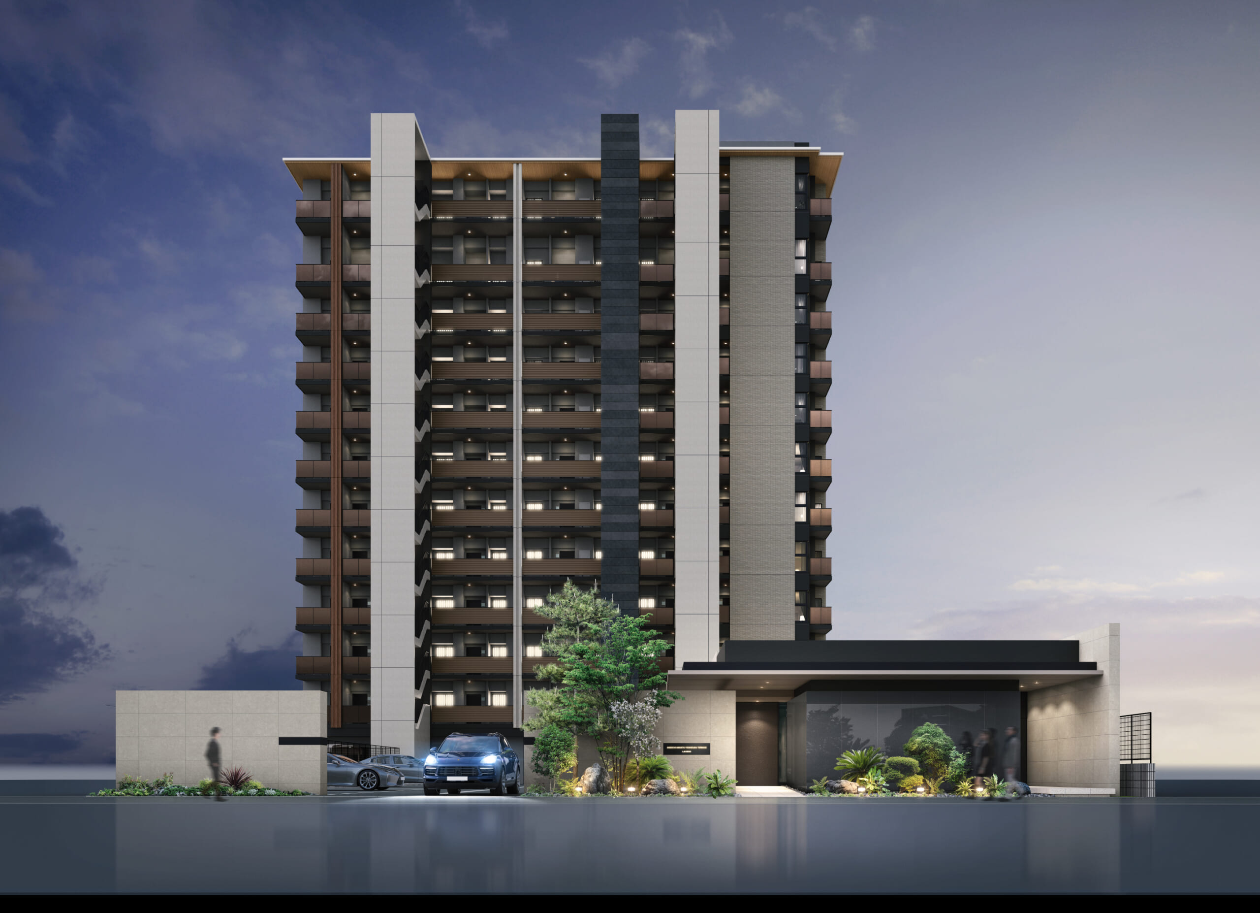 落着いた街並みを背景に、ひときわの存在感を放つレジデンス