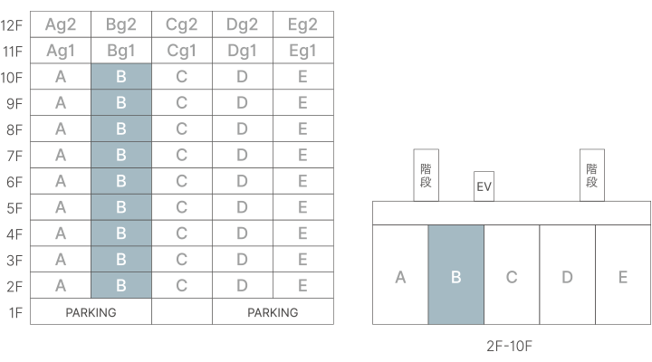 B type | 2LDK 専有面積 55.12㎡(16.67坪) バルコニー面積 11.30㎡( 3.41坪) A type | 4LDK A type | 4LDK C type | 3LDK C type | 3LDK