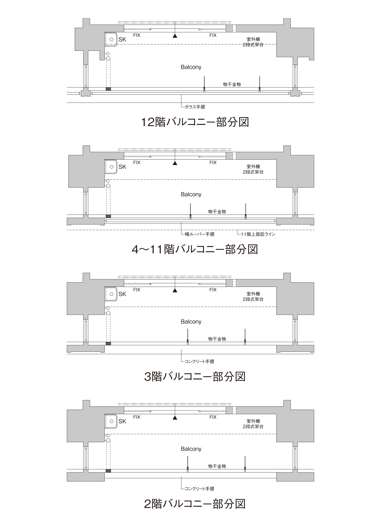 B type | 3LDK 専有面積 64.26㎡(19.43坪) バルコニー面積 13.15㎡(3.97坪) A type | 4LDK A type | 4LDK C type | 2LDK C type | 2LDK