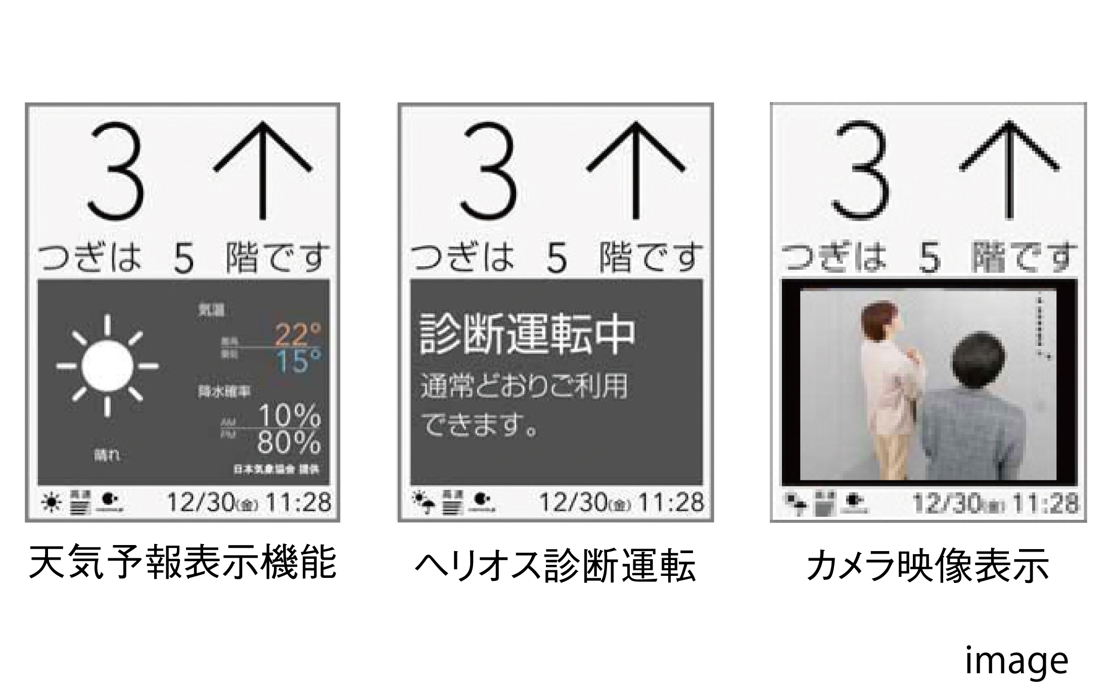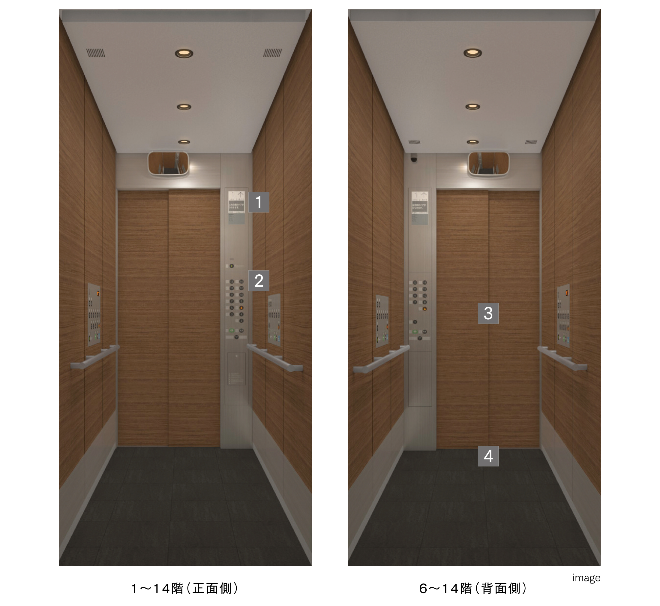 AMENITY 健やかで快適な毎日を支えるコンフォートサービス。 ELEVATOR 1かご内液晶インジケータ 今必要な情報を、大きく、見やすく 今必要な情報を、大きく、見やすく かご内の階床表示器は、8.4インチカラー液晶インジケーターを装備。視野角の広い「IPS」※1液晶パネルを採用し、視認性を向上させました。また、見やすくわかりやすい情報提供を行うために、数字の誤認性の少ないフォントとハイコントラスト文字表示を採用。日時※2や天気予報※2の表示、緊急時の4カ国語表示など、より多くの人々が快適に利用できる機能が充実しています。 ■通常時 ■保全契約時の機能※2 ※1「IPS」は(株)ジャパンディスプレイの日本における登録商標です。 ※2 当社と保全契約が必要となります。 2ハイコントラストボタン ホワイトとブラックの配色でコントラストを確保し、数字を見やすくしました。凸文字で触ってもわかりやすい形状です。 image 3マルチビームドアセンサー エレベーターの出入口に、40本の赤外線ビームを発光。これを1本でも遮ると、ドアに手や物が触れることなく、閉じかけたドアが開きます。 image 4敷居間隔10mm カゴと乗場の敷居間隔を従来の30㎜から10㎜に短縮し、乗降時の安全性を向上します。 image OTHERS 1階ペット足洗い場 1階にペット専用の足洗い場を設けるなど、心を癒してくれる大切な家族と、共に暮らせる環境をつくっています。 宅配BOX お留守の際も荷物の受け取り保管が可能で、外出がちなお宅でも安心。 ※掲載の写真・イラストは、メーカー提供資料及び実績施工例で実際とは異なる場合があります。 EQUIPMENT TOP CUSTOMIZE PET KITCHEN EQUIPMENT BATHROOM EQUIPMENT SANITARY EQUIPMENT EQUIPMENT LIST ECO GAS SYSTEM ENE-SHARE PLAN SECURITY STRUCTURE AMENITY SAFETY CHECK