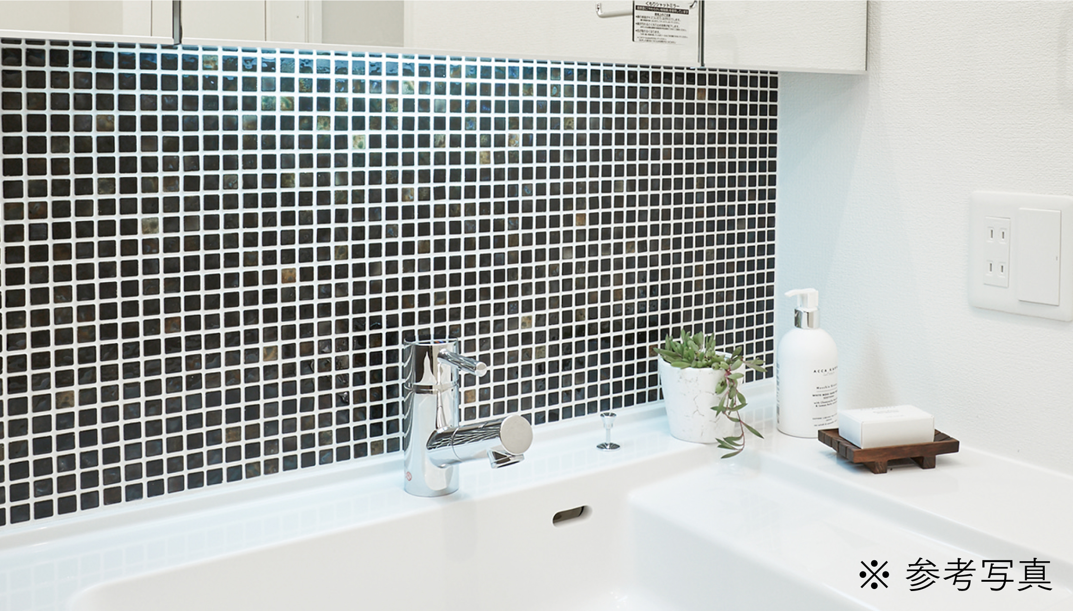 SANITARY EQUIPMENT 清潔感とお手入れのしやすさにこだわったサニタリー空間。 ※タイプにより形状が異なります。 施工写真 三面鏡下モザイクタイル 三面鏡収納と洗面ボウルの間の壁は、お洒落でモダンな雰囲気を醸し出すモザイクタイル貼りとなっています。 三面鏡収納&プリンセスミラー しまうと使うが上手にできる三面鏡。ミラーの裏側はたっぷりの収納スペース付です。また、三面鏡中央の両サイドにはON/OFF式のLED照明が仕込まれています。メイクやグルーミング時に便利です。 ※タイプにより形状が異なります。※A、B、G、Hタイプは、2面鏡になりプリンセスミラーは付いておりません。 カウンター下ストレージ 洗面化粧台下の収納キャビネットには棚板に加えて、ワイヤーバスケットやエコボックスを装備しています。 ※タイプにより形状が異なります。※A、B、G、Hタイプは、ワイヤーバスケット、エコボックスは付いておりません。 小物ポケット カウンター下の幕板の裏にポケット収納を設けました。日常使いの小物入れやママ専用のメイク道具入れなどに便利です。 ※A、B、G、Hタイプは除く。 カウンター一体型洗面ボウル 一体形成のモダンでおおらかなフォルムのカウンターボウル。金具のないフランジレス仕様なのでお手入れがしやすく、いつも清潔に保てます。 ※タイプにより形状が異なります。 ※アクセントクロス・ペーパーホルダーの形状はオプションです。 施工写真 大洗浄5ℓ、小洗浄3.8ℓの「超節水ECO5トイレ」。従来品※(大13ℓ)と比べ、約69%の節水を実現。 ※1989〜2001年発売品 【試算条件】 4人家族(男性2人、女性2人)が大1回/人・日、小3回/人・日使用した場合で算出。 【引用元】省エネ・防犯住宅推進アプローチブック アクアセラミック 従来の陶器ではできなかった「頑固な水アカ」も「汚れ」もどちらも落とせる、お掃除ラクラクな衛生陶器です。 お掃除ラクラク お掃除しにくいタンクまわりをキャビネットで隠しました。トイレまわりを拭くだけでお掃除が簡単です。 お掃除リフトアップ 便座が真上に上がるので、お掃除できなかったすき間汚れが奥まで楽に拭き取れます。 トイレ吊戸棚 トイレ上部を有効活用した収納スペース。扉付きなのでトイレットペーパー等の消耗品を見せることなくスッキリと整理できます。 キャビネット一体型手洗器 キャビネットの上部に手洗い器を設置しています。キャビネットと一体となってスッキリと収まりました。 しっかり収納 タンク両サイドのスペースをキャビネット収納として有効活用しました。扉があるのでお掃除道具もスッキリ片付きます。 キレイ便座 汚れが入りやすい継ぎ目がないので、便座裏のお掃除もラクラクです。 フチレス形状 フチを丸ごとなくした形状なので、サッと一拭きでお掃除できます。 フルオート便器洗浄 便座から立ち上がると自動的に便器を洗浄。 スッキリノズルシャッター 使わないときはノズルを収納し、汚れを防ぎます。 ※掲載の写真・イラストは、本物件モデルルームを撮影したもの及び他物件施工例とメーカー提供資料で実際とは異なる場合があります。なお、備品などは価格に含まれません。 EQUIPMENT TOP CUSTOMIZE PET KITCHEN EQUIPMENT BATHROOM EQUIPMENT SANITARY EQUIPMENT EQUIPMENT LIST ECO GAS SYSTEM ENE-SHARE PLAN SECURITY STRUCTURE AMENITY SAFETY CHECK