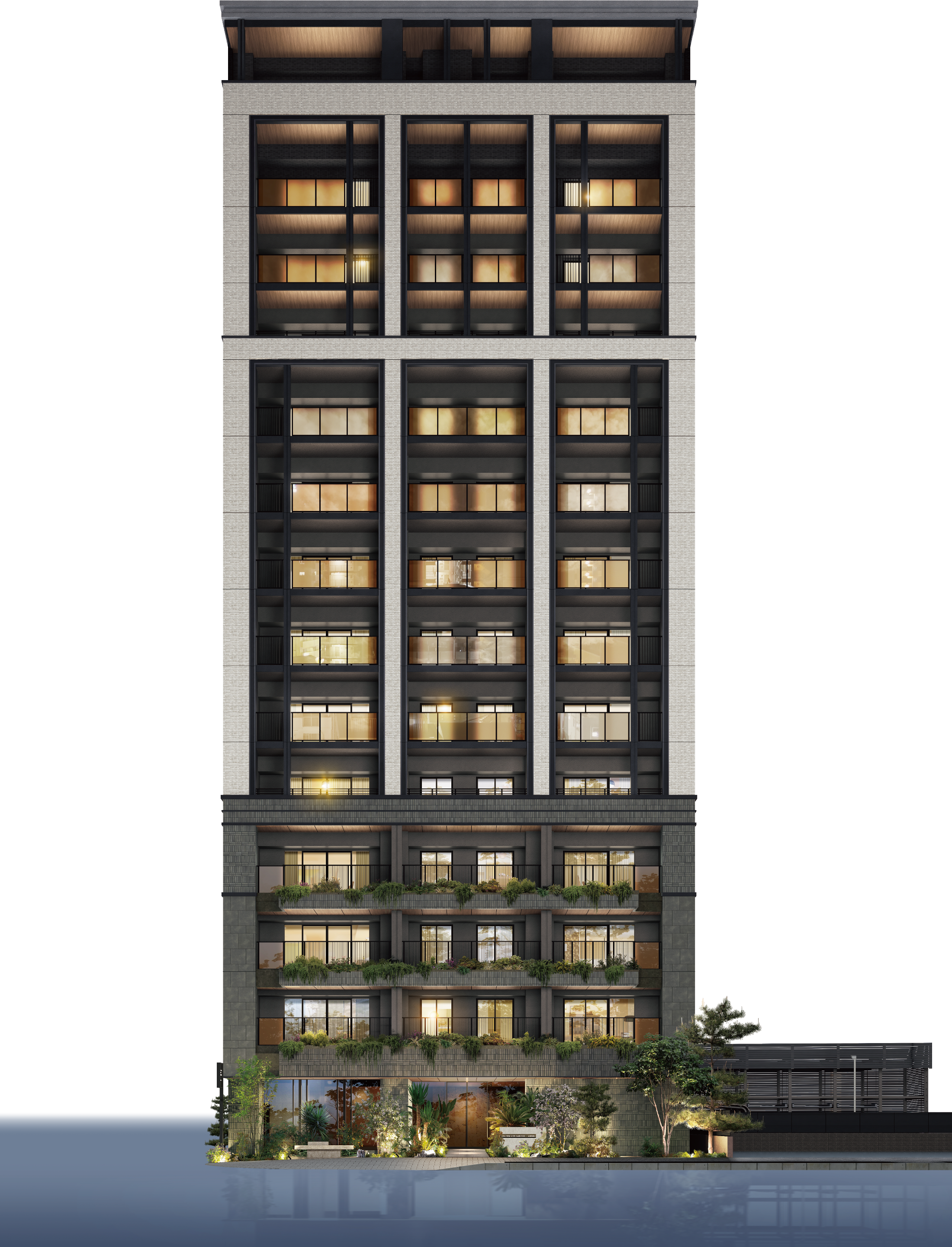 中・高層階へと上がるにつれて軽やかに昇華させた、品格ある垂直のグラデーション。