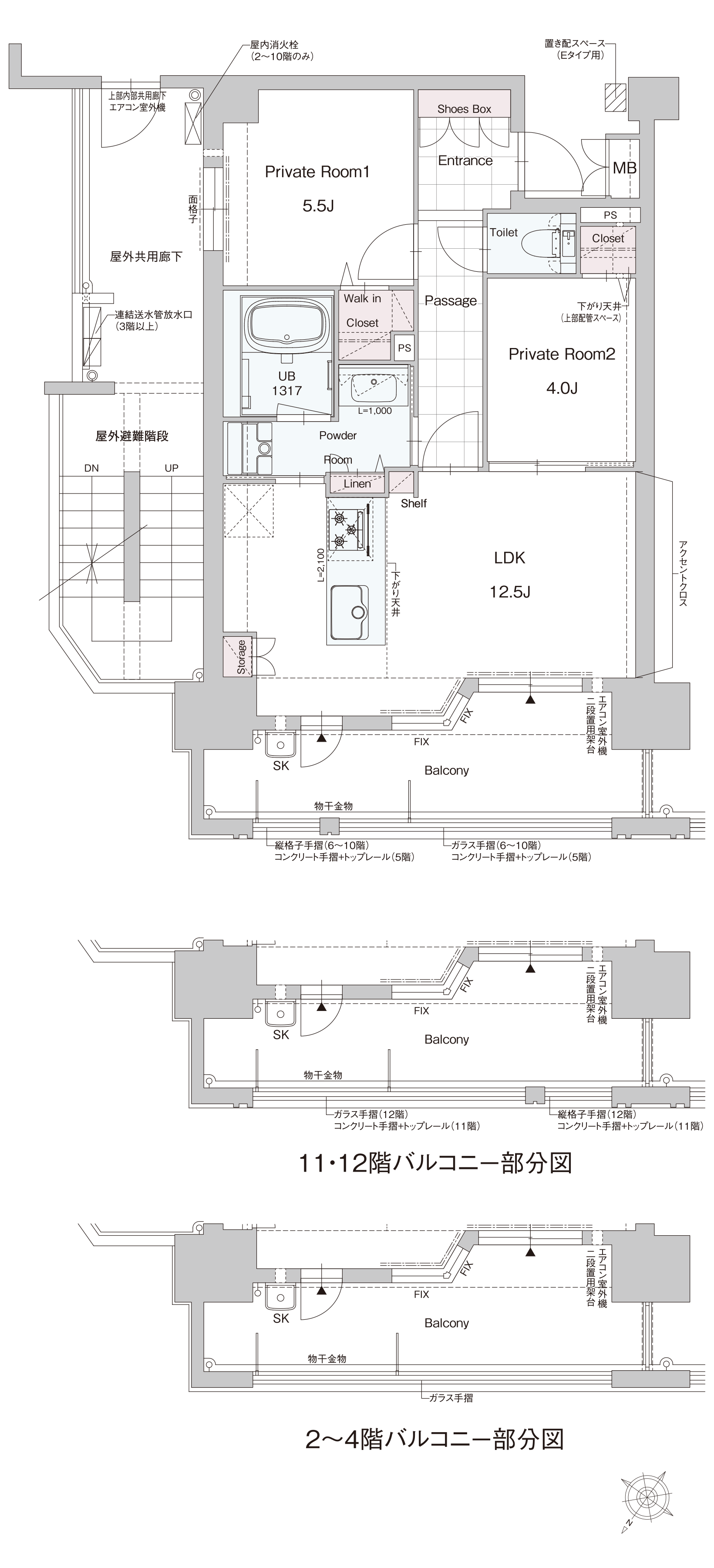 ※12Fのみプライベートルーム2のエアコン配管は実装となります。