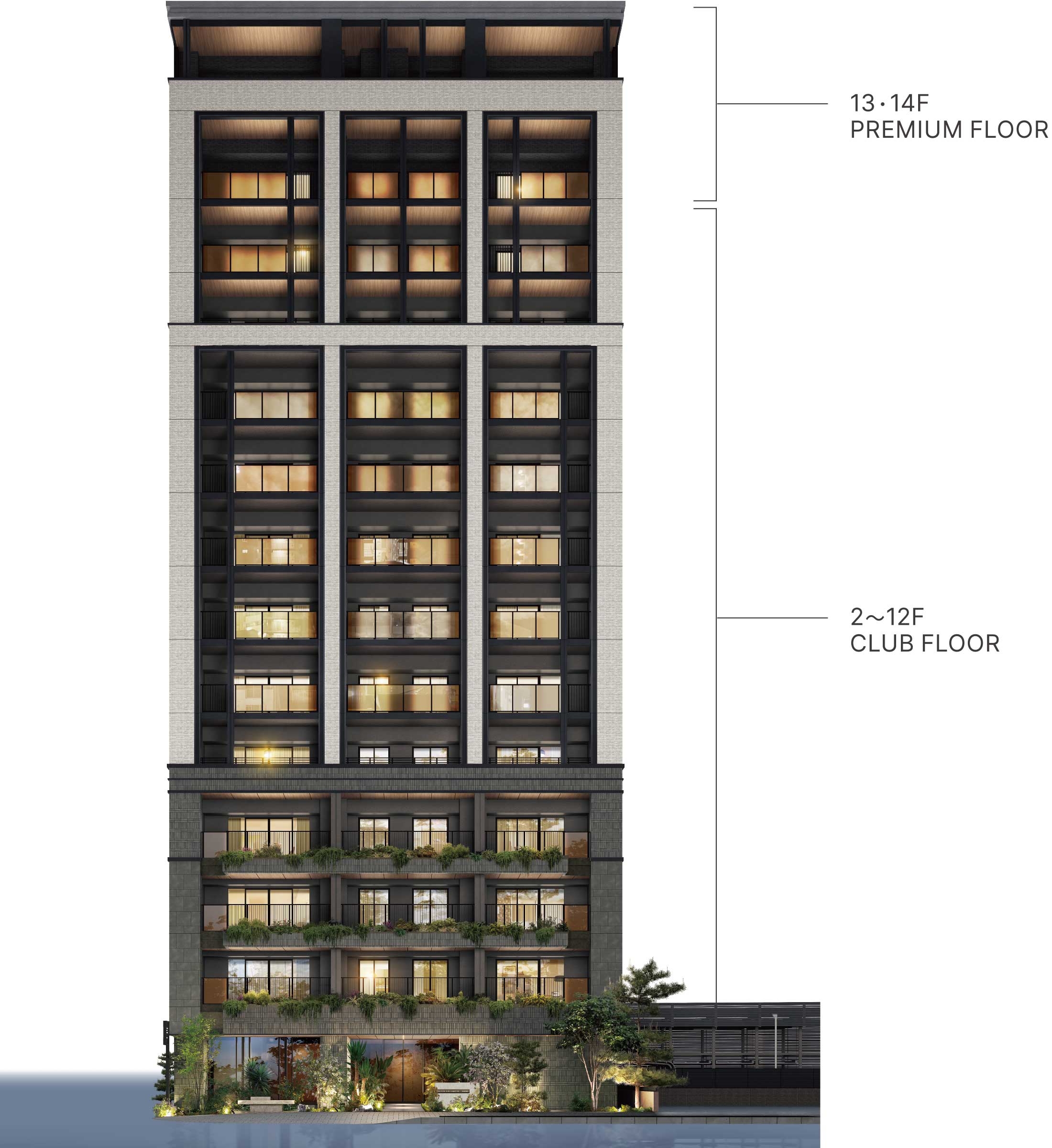 ※13F・14Fの屋内共用廊下は仕上げ、形状が異なります。