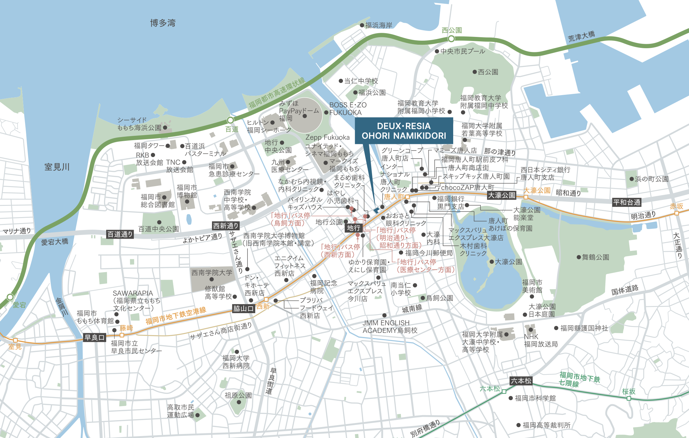 DEUX・RESIA 大濠 並木通りが位置するのは、