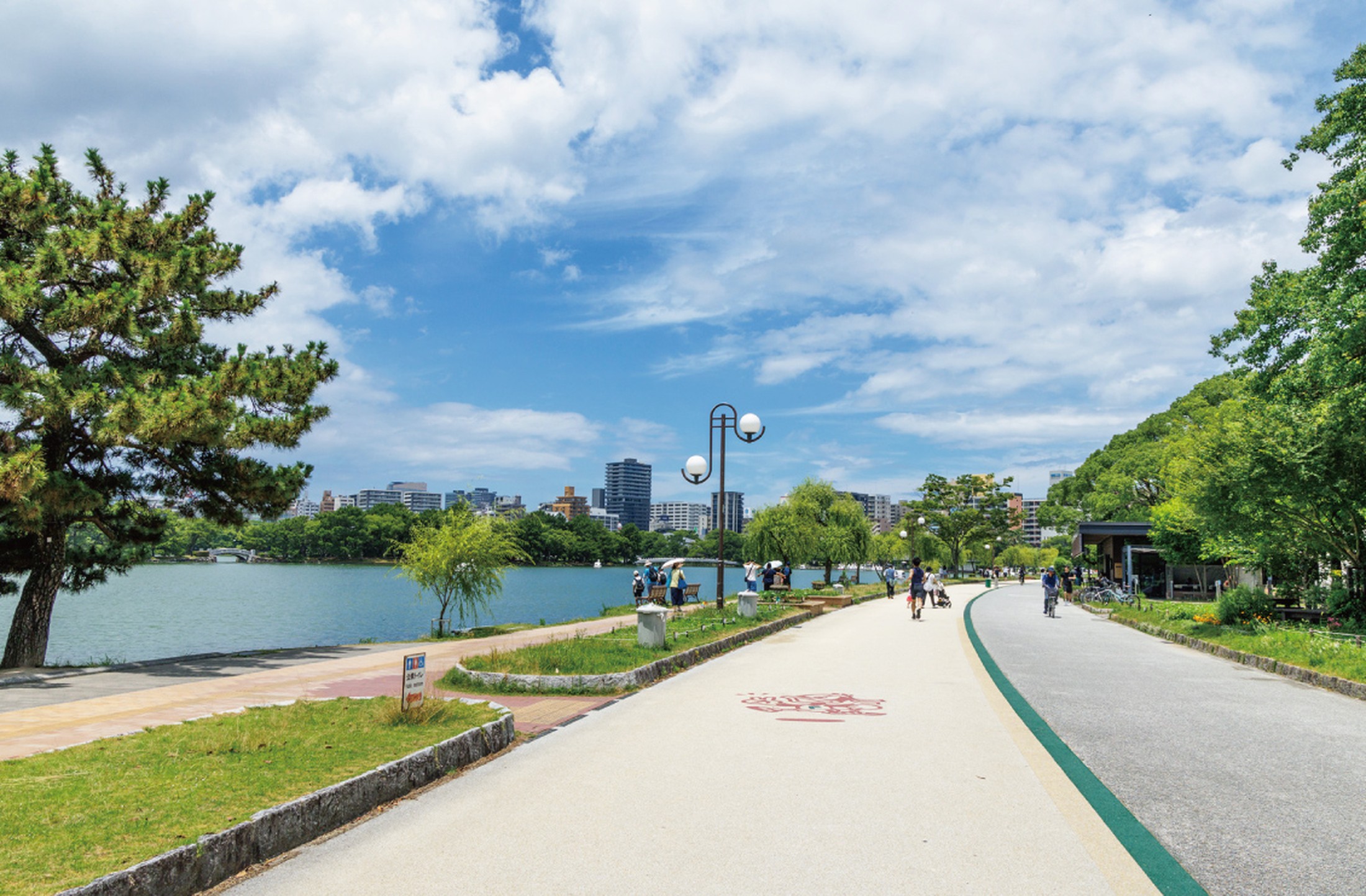 福岡市の中心部にもかかわらず、緑の潤いがごく身近に感じられます。