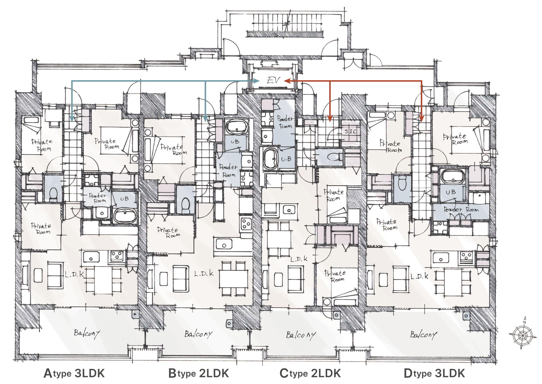 独立したEVホールを配したプランなど